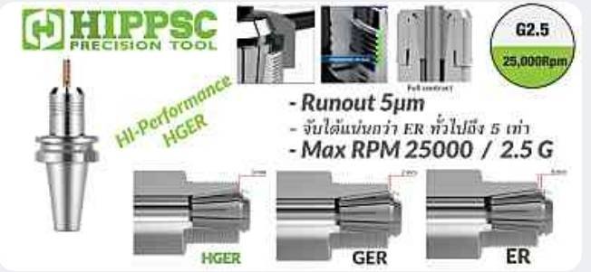 Runout 5µm จับได้แน่กว่า ERทััวไปถึง 5 เท่า Max RPM 25000/2.5G